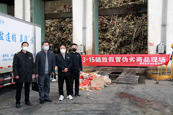 霍邱海創(chuàng)協(xié)助霍邱縣市場監(jiān)督管理局銷毀假冒偽劣商品