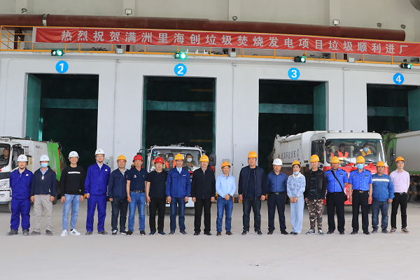 海螺創業滿洲里海創垃圾焚燒發電項目是公司東北發展戰略布點的第一個項目,地處高寒地區,在公司領導的關心指導下,在專業部室的大力支持下,在施工單位、監理單位、安裝單位等各參建單位的大力配合和團結協作下,2021年6月8日上午9時58分實現首車垃圾提前進廠。滿洲里市領導、市執法局相關負責人、滿洲里海創部門領導、滿洲里市二建、中機五安等相關負責人共同見證了這一時刻。