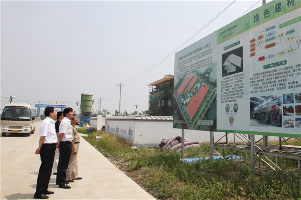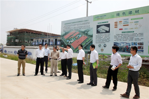 ? ? 現場,雷光鵬組長一行還仔細查看了公司事前準備的產品樣品,詳細了解了該類新型建筑材料的生產工藝和產品性能等有關情況,并不時與同行人員探討新型建筑材料的應用、推廣和新產品開發。聽完產品介紹,李總還向雷光鵬組長一行介紹了公司CCA工程項目建設進展和生產線工藝布局等有關情況。
