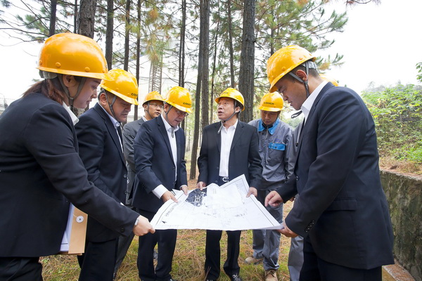 ? ? 簽約儀式結束后,紀總立即趕赴寧國水泥廠日產5000噸水泥生產線,對照圖紙,現場查看項目建設位置。